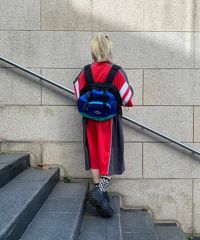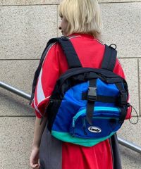 コロンとした横長のフォルムが可愛いバックパック。 500mlのペットボトルや折りたたみ傘の収納に最適なサイドポケットや 財布やスマホなど小物の収納に便利なジッパー&マチ付きフロントポケットなど、使い勝手抜群。 3種類の異なる素材を使用、CANDYロゴのラバーネームがワンポイントで入ったシンプルなデザイン。 タウンユースからレジャー、アウトドアなど幅広いシーンで使用可能です。