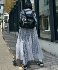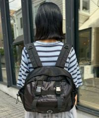 コロンとした横長のフォルムがキュートなバックパック ●デザイン性と実用性を兼ね備えたバックパック ●軽量かつしなやかなポリエステルリップストップとやや光沢感のあるナイロンツイルを組み合わせたデザイン ●両サイドポケットはポケット口がゴム紐とストッパーの仕様で500mlのペットボトルや折り畳み傘の収納に最適 ●財布やスマホなど小物の収納に便利なジッパー&マチ付きのフロントポケット ●「CANDY」ロゴのラバーネームがアクセントになったデザイン ●ショルダーストラップの調節が可能で、男女兼用、ユニセックスでの使用ができます ●内側にもポケットを配置し、細かい荷物にも配慮 ●普段使いはもちろん、アウトドアやフェス、旅行まで幅広く活躍するバッグ ■仕様 ・マチあり ・メイン開締:面ファスナー ・フロント:ファスナーポケット×2 ・内側:中吊りポケット ・側面:サイドポケット×2