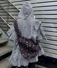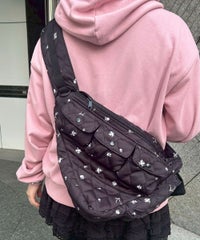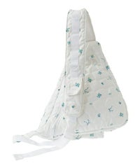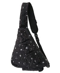 三角形が印象的!ニュータイプのスリングバッグが登場! ●中綿を入れてやさしい肌ざわりに仕上げた、ワンショルダー仕様のバッグ ●オリジナルプリントの小花柄生地を使用しております ●ワンショルダー時は、左肩にショルダーパッドがくる仕様です ●ショルダーパッドは長さ調節が可能で、短く設定すると肩掛けにも対応できます ●複数のポケットが付いており、機能性も○ ●リュックとはまた違う、新鮮な雰囲気をプラスできるアイテムです ■仕様 ・ワンショルダーバッグ ・ショルダーパッド調整可能 ・メイン開閉: ファスナー ・表側: スナップボタン付きポケット×3 ・内側: ポケット×1 ・背面:ファスナー付きポケット×1 ・側面:スナップボタン付きポケット×1 ・ショルダーパッド:スナップボタン付きポケット×1