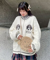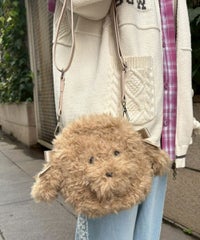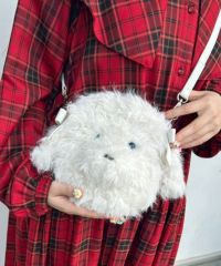 とびきりキュートな、わんちゃんのお顔型バッグが登場! ●立体的なお鼻やお耳のパーツがついた、ファーショルダーバッグです ●ショルダーストラップは長さ調節が可能です ●お耳部分には、ショルダーストラップと同じ合皮生地で作ったリボンをお付けしております ※製品版は、ファスナーがWファスナーからシングルファスナーに変更になります ■仕様 ・ショルダーバッグ ・ショルダーストラップ調節可能 ・メイン開閉: ファスナー ・内側:ポケット×1