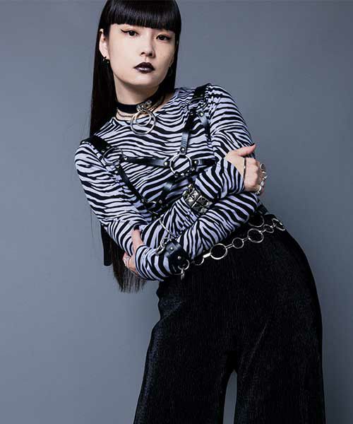 【商品詳細】チェッカーフラッグ/ゼブラ柄の生地を使用したトップス。 一枚でももちろん、ロンTやスウェット、ニットなどのインナーとして、スタイリングのポイントにおすすめです。 ジャストなシルエットで、コーディネートの幅が広がる1枚。通年使えるユースフルアイテム。