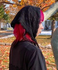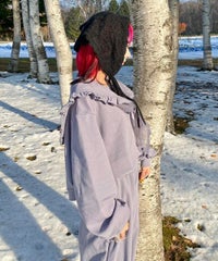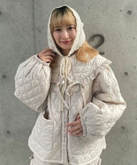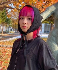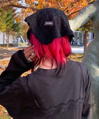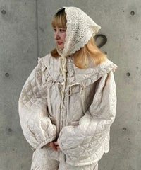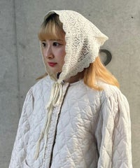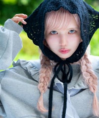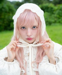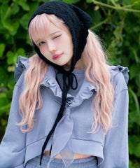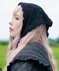 起毛感のあるウール・アクリルの混糸を使用したバブーシュカ。 レーシーな編み地でノスタルジックな雰囲気を演出。 後ろ側には益若氏デザインのオリジナルネームタグを付けてアクセントをプラス。 ダウンスタイルはもちろん、三つ編みやツインテールなど様々なヘアスタイルとも相性抜群◎ コラボレーションアイテムのキルティングのセットアップやワンピースと 組み合わせたガーリッシュな着こなしがオススメ。 秋~冬のスタイリングのアクセントに最適なアイテムです。
