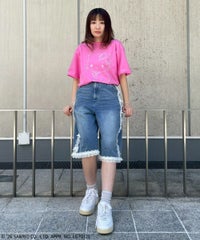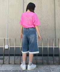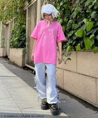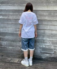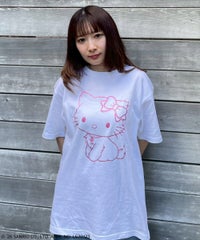 チャーミーキティやリボンモチーフをグリッタープリントで表現したTシャツ? ●5.6オンス天竺を使用 ●程よくゆとりを持たせたシルエット (Lサイズに該当するサイズ感です) ●様々なアイテムと合わせやすいサイズ感です ・・・・・・・・・・・・・・・・・・ ・透け感:なし ・伸縮性:あり ・生地の厚さ:普通 ・・・・・・・・・・・・・・・・・・