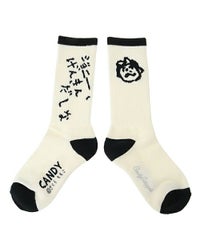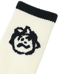 コジコジがジョニーにあげた手紙に書いたメッセージと自画像をジャガードで表現したリブソックス。 コジコジは「げんきだしな」を「げんきんだしな」と書き間違え、励ますどころか脅迫になってしまったあのお手紙です! 足底部分はパイル仕様でクッション性を持たせており履き心地も◎ 同コラボのアイテムと組み合わせた着こなしもオススメ。 ポップなカラーリングに仕上げたREDとBLUE、 ベーシックにご着用いただけるOFF WHITEとBLACKの4色展開。 スタイリングのアクセントにぴったりな1足です。