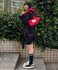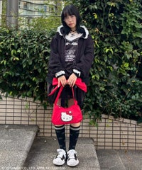 HELLO KITTY コラボ♡大きなリボンとアップリケが目を惹くハンドバッグ ●HELLO KITTYをイメージした大きなリボンの持ち手がポイント ●コンパクトでありながらマチを広めに取っており、収納力も抜群 ●ファスナー部分にはハート型のチャームを使用しガーリーに♡ ●HELLO KITTYのリボンをイメージしたレッド、シンプルで使いやすいブラックの2色展開 ■仕様 ・マチあり ・開閉部分:ファスナー(ハートチャーム付き) ・内側:ファスナーポケット×1