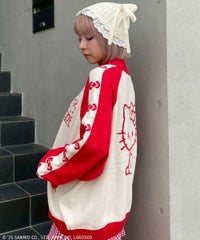 レトロタッチなHELLO KITTYのキュートなニットジャンパー。 両袖のライン部分にはリボンモチーフを連ねアクセントをプラス。 程よい厚みのコットン・アクリル混紡糸を使用、ロングシーズン着回せるアイテム。 ダブルジップ仕様で様々な着こなしを楽しめます。 軽めの羽織としてはもちろん、ジップを閉じてトップスとしてもご着用いただけます。 ・・・・・・・・・・ ・・・・・・・・ ・透け感: なし ・伸縮性: あり ・生地の厚さ: 普通 ・裏地: なし ・・・・・・・・・・ ・・・・・・・・ 商品説明 ギャルテイストなHELLO KITTYのニットカーディガン。 前身頃にHELLO KITTYのロゴ刺繍、袖にハイビスカス、背面にHELLO KITTYをジャガードで表現しました。 バックスタイルまでかわいい1枚です。 モコモコ&柔らかな手触りの糸を使用し、軽やかな着心地に仕上げました。 ゆったりと着られるカジュアルなシルエットで、 ガーリーなアイテムを組み合わせたスタイリングはもちろん、 ダメージデニムなどストリートなアイテムを組み合わせても相性◎ ・・・・・・・・・・ ・・・・・・・・ ・透け感: なし ・伸縮性: あり ・生地の厚さ: 普通 ・裏地: なし ・・・・・・・・・・ ・・・・・・・・ 商品説明 ギャルテイストなHELLO KITTYのハイネックトップス。 前身頃にHELLO KITTY、袖にハイビスカスをジャガードで表現しました。 透け感のあるふんわり軽やかな編み地に仕上げました。 ハイネックでこなれた印象を演出。 袖はふわっとボリュームのあるパフスリーブ、袖口は長めのリブでキュッとさせメリハリを効かせました。 身頃は程よくゆとりのあるシルエット、コンパクトな丈感でバランスよく着こなしていただけます。 ・・・・・・・・・・ ・・・・・・・・ ・透け感: あり ・伸縮性: あり ・生地の厚さ: やや薄手 ・裏地: なし ・・・・・・・・・・ ・・・・・・・・ 商品説明 商品説明 シャイニーなハート柄のジャガード素材を使用したバルーンドレス。 ランジェリー風のディティールを取り入れ女性らしい雰囲気を演出。 ビスチェの内側にボタンをつけておりビスチェとスカートの間隔を調整可能。 肩紐もアジャスター 付きで長さを変更できます。 身頃とスカートを分離でき、ワンピースとしてはもちろん ビスチェ・スカート単体でもご着用できる3WAY仕様。 シーンや用途に合わせた着こなしがお楽しみいただけます。 タウンユースはもちろん、コンサートやイベントなどにも最適です。 キャンディらしい遊び心が満載のスペシャルな1枚です。 ・・・・・・・・・・・・・・・・・・・・・・ ・透け感:なし ・伸縮性:なし ・生地の厚さ:やや厚い ・裏地:あり ・・・・・・・・・・・・・・・・・・・・・・