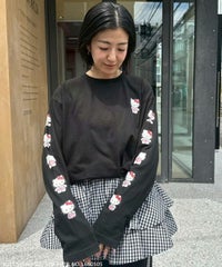 ●Candy StripperだけのスペシャルなデザインのロンT! ●胸元と両袖にランジェリーでおめかししたHELLO KITTYをプリント♡ ●程よい厚みの17/-天竺を使用 ●身体のラインが出にくいゆとりを持たせたサイジング (Lサイズに該当するサイズ感です) ●シーズンレスでご着用いただける万能アイテムです ・・・・・・・・・・ ・・・・・・・・ ・透け感: なし ・伸縮性: あり ・生地の厚さ: 普通 ・・・・・・・・・・ ・・・・・・・・