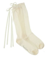 シアー感のあるリブ編みのハイソックス。 両サイドには益若氏のロゴを刺繍で施しアクセントをプラス。 リボン付きで、レースアップはもちろん後側でリボン状に結んだりetc… 用途や着こなしに合わせて様々なアレンジがお楽しみいただけます。 ショートボトムを組み合わせたスタイリングもオススメ。 ガーリーなスタイリングに最適なアイテムです。