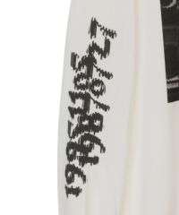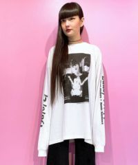 グラフィックデザイナー・河村康輔氏が写真をシュレッダー加工したユニセックスなシルエットのロンT。 右袖にはブランド創設年月日と秋元梢の生年月日が重なったグラフィック、左袖にはCANDY STRIPPER、秋元梢、河村康輔さんの名前をシュレッダー加工し重ねたグラフィックをプリント。 一枚で着たり、重ね着アイテムのインナーにしたり着回しのきく一枚。
