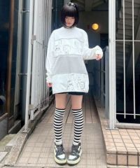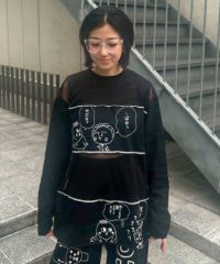 コジコジと次郎がおしゃべりしているシーンをプリントした天竺とメッシュをドッキングしたトップス。
