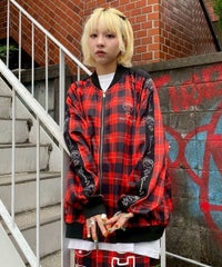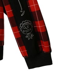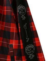 オリジナルのチェック柄をエステルポンチにプリントしたトラックジャケット。 程よい肉感のエステルポンチ素材を使用し軽やかな着心地に仕上げています。 左胸にコジコジのワンポイント、両袖に「ガーン」とショックを受けるコジコジをそれぞれ刺繍しています。 両開きファスナー仕様で着こなしや用途に合わせてアレンジが可能。 キャンディらしいタータンチェック柄とベーシックにご着用いただけるブラックの2色をご用意。 同じ素材を使用したトラックパンツを組み合わせてセットアップ風の着こなしもオススメ☆ タウンユースはもちろんルームウェアにも最適なアイテムです。