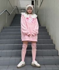 高いデザイン性のアイシングのクッキーで人気を博している COOKIEBOY氏がオリジナルで描き起こしたファニーフェイスな キャットモチーフがキュートなスウェットワンピース。 ゆったりとした身幅とアームホールで、体のラインを拾いにくく、 お尻まですっぽり隠れる丈感もうれしい。 程よい肉感のある裏毛素材を使用。 型崩れしにくくロングシーズン着用できます。 ガーリーな着こなしはもちろん、ストリートなスタイリングにもぴったりな1枚です。