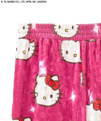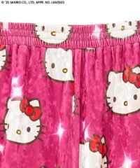 クラッシュベロアにハローキティのオリジナルプリントを施したパンツ。 ウエスト部分はオールゴム仕様でリラクシーな着心地に仕上げました。 脚のラインが出にくい程よいワイドシルエットもポイント。 タウンユースはもちろん、ルームウェアとしてもオススメ。 1枚で主役級にキマるアイテムに仕上がりました。
