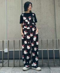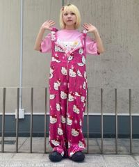 クラッシュベロアにハローキティのオリジナルプリントを施したサロペット。