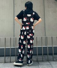 クラッシュベロアにハローキティのオリジナルプリントを施したサロペット。 ゆとりを持たせたシルエットでリラクシーな雰囲気を演出。 パンツ部分にセンタープレスを入れることで脚長効果も◎ タウンユースはもちろん、ルームウェアとしてもオススメ。 1枚で主役級にキマるアイテムに仕上がりました。