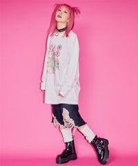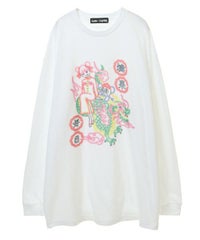 \LiSAとPEPEのオリエンタルなネオンロンT/ ●ドラゴンに腰掛けているLiSAがちょっぴりセクシーなグラフィックのロンT ●ネオンサイン風のグラフィックを生地馴染みの良いプリント手法でカラフルにプリント ●「キャンディ」を意味する糖果とLiSAが大切にしている言葉「今日もいい日だっ」を組み合わせた”糖果好日” ●タフな5.6オンスのヘビーウェイトコットンを使用 ●耐久性に優れ、型崩れしにくいしっかりとした生地感が特徴 ●袖口はリブを使用、スッキリとした着用感を得られます ●男女で着用いただけるユニセックスアイテム (XXLサイズに該当するサイズ感です)