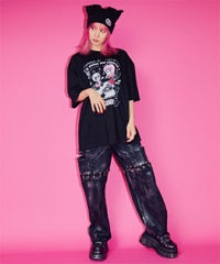 \LiSAとPEPEがメロディを奏でるTシャツ/ ●フロントにLiSAとオリジナルキャラクター・パンダの”PEPE”が踊るアメコミタッチなグラフィック ●ネオンサイン風のグラフィックを生地馴染みの良いプリント手法でカラフルにプリント ●"陽気になれる"という意味の It makes you cheerful ●タフな5.6オンスのヘビーウェイトコットンを使用 ●耐久性に優れ、型崩れしにくいしっかりとした生地感が特徴 ●ユニセックスで着用可能なオーバーサイズ (XLサイズに該当するサイズ感です)