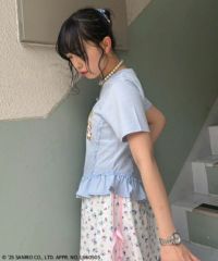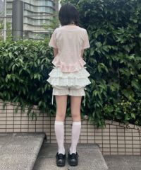 繊細なレースをあしらったビスチェ風のディティール使いがキュートなトップス。