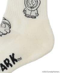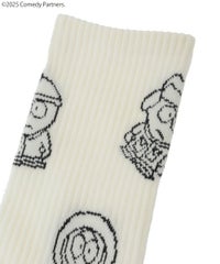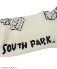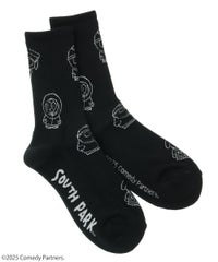 スタン・カイル・カートマン・ケニーを散りばめたリブソックス。 足底部分には手描きロゴをジャガードで編み立てました。 足裏部分はパイル仕様でクッション性も抜群。 同グラフィックを使用したTシャツと合わせたコーディネートもおすすめです。 ・・・・・・・・・・・・・・・・・・・・・・ ・透け感:なし ・伸縮性:あり ・生地の厚さ:普通 ・・・・・・・・・・・・・・・・・・・・・・