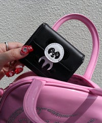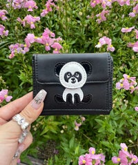 PEPEの三つ折り財布が登場! 小さめのバッグにも入る、コンパクトな三つ折り財布 カード収納が多く実用性も抜群! ●Candy Stripperのオリジナルキャラクターパンダの”PEPE”がおすわりしている他にはないキュートなデザイン ●お財布部分はマットな合皮素材、PEPE部分は光沢のあるエナメル素材を使用 ●小銭入れは外側に付いているので、お財布を開くことなくサッと取り出せます ●手のひらにすっぽりと収まるコンパクトサイズでキャッシュレス派の方にもおすすめ◎ ●お友達とお揃いでの使用やプレゼントにも◎! ●仕様 外側:小銭入れ×1 内側:お札入れ×1、カード入れ×3 約9枚のカードが収納可能。