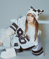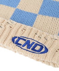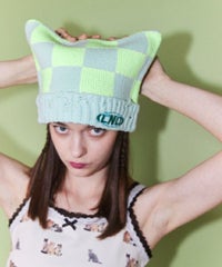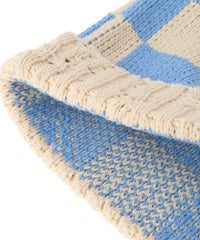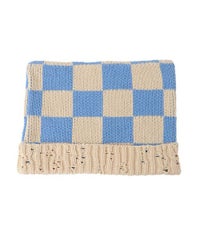ローゲージでざっくりとした風合いに仕上げたチェッカーフラッグのビーニー。 リブ部分には細かめのダメージ加工を随所に入れて小慣れた印象に。 スクエア型でトレンド感もプラスしています。 同シリーズのベストと組み合わせていただいても◎ 春らしいポップなカラーリングのコーディネートにぴったりです。