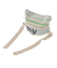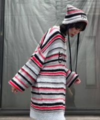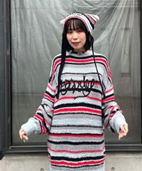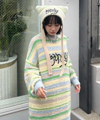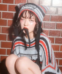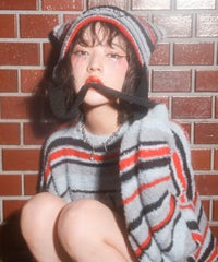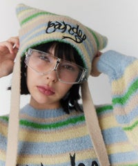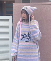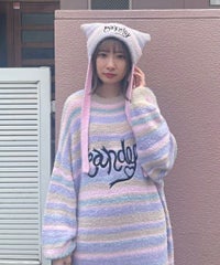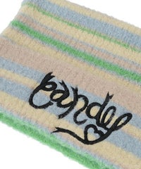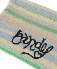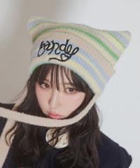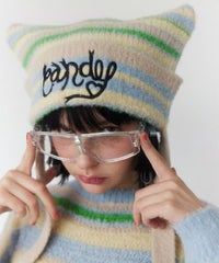 ロリポップのようなカラーリングがキュートなマルチボーダービーニー。 大きく刺繍されたガーリーなCANDYロゴと、猫耳のようなシルエットがポイント。 同カラー展開のニットトップスと合わせたコーディネートもおすすめ。