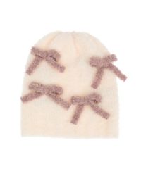 ニット素材のリボンを散りばめたビーニー。 ボディのカラー展開によってリボンのカラーリングが異なります。 ガーリーなスタイリングにはもちろん、カジュアルなスタイリングのアクセントとしても◎ 同シリーズのカーディガン、パンツとのコーディネートもおすすめです。