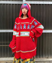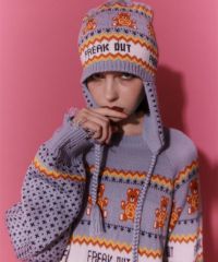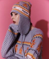 パンキッシュなモチーフを取り入れたノルディック柄のフライトキャップが登場! レトロなカラーリングでポップな雰囲気に仕上げています。 柔らかな編み地で締め付け感がなく被り心地も◎耳周りもカバーされ防寒対策にも最適。 同シリーズのニットトップスと組み合わせたコーディネートもオススメ。 遊び心の効いたアイテムに仕上がりました。