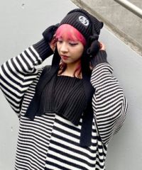オリジナルロゴの織りネームがポイントのスクエア型ビーニー●「CND」ロゴの織りネームがポイント●両端に編み立てた紐を付けており、後ろ側でリボン状に結んだり、両サイドでランダムに結んで見たり….。色々なアレンジがお楽しみいただけます●スタイリングのアクセントに最適なピンク・水色のボーダーとベーシックにお使いいただけるブラック(無地)の3色展開●同じ織りネームを使用したセーラーニットを組み合わせた着こなしもオススメ◎●コーディネートのアクセントに最適なアイテムです。