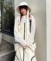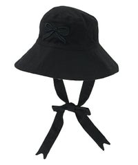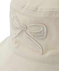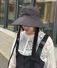 フロントに大きく入った立体的なリボンの刺繍が目を惹くバケットハット。 カジュアルすぎないやや丸めのシルエットと、広めのつばもポイント。 サイドに垂らした紐の先端はリボンをイメージしたカットに。 タウンユースはもちろん、キャンプや夏フェスなどレジャーシーンでの着用もおすすめ◎