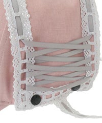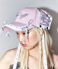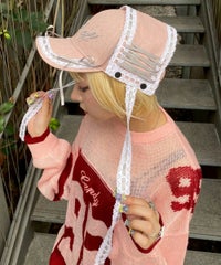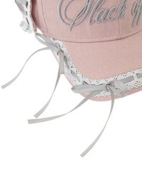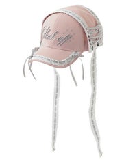 キャップにヘッドドレスがドッキングしたような、デコラティブな一点。 カジュアルな生地にあえてはしごレースやリボンをあしらい、ガーリーに仕上げました。 ヘッドドレス部分は取り外し可能なお作りで、シンプルなキャップとしてもお使いいただけます。 いつものスタイリングにトレンド感を追加したい時に役立つ、アクセントになるアイテムです。