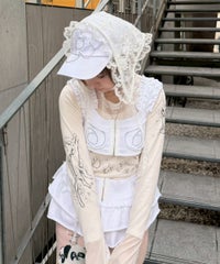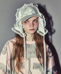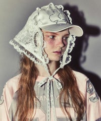 3WAY仕様♡とびきりデコラティブなnewキャップが登場! ●ラインストーンのおはなモチーフが、キャッチーな印象の一点 ●レース素材のスカーフは、つば横のリボンで取り外しが可能です ●セットでのご着用はもちろん、バブーシュカとキャップ、それぞれ単体でもご着用いただけます ・・・・・・・・・・・・・・・・・・・・・・ ・透け感:あり(スカーフ部分のみ) ・伸縮性:なし ・生地の厚さ:普通 ・裏地:なし ・・・・・・・・・・・・・・・・・・・・・・