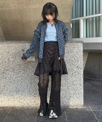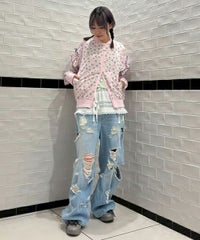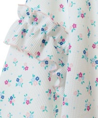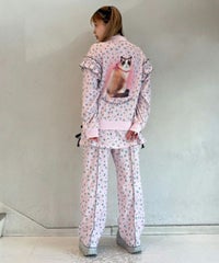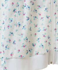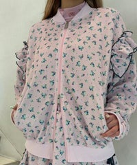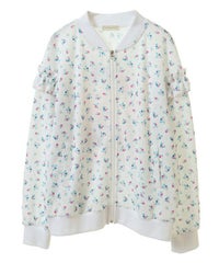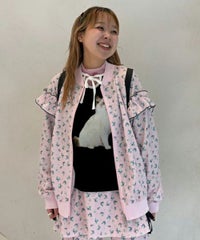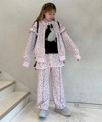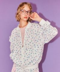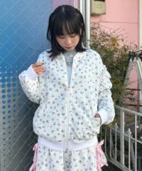オリジナルの花柄をプリントしたワッフル素材のブルゾン。 ファスナー部分は両開きで、着こなしに合わせて調整可能。 袖ぐりに施したフリルとキュートなバックプリントで程よくガーリーに。 同シリーズのパンツを合わせたコーディネートもおすすめ◎