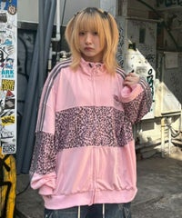 エステルポンチとレオパードのリブ素材を組み合わせ