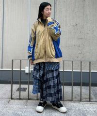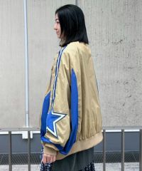 バイカージャケット風のカラーリングや切り替えがインパクト大な キャンディらしいリメイク風デザインのブルゾン。 身幅を大きめに設定し落ち感のあるオーバーシルエットにすることで“抜け感”を演出。 両袖に施したラインテープとスターモチーフでアクセントをプラス。 ファスナー部分は両開きファスナーにすることで用途やシーンに合わせ着こなしをお楽しみいただけます。 軽やかなナイロンタフタを使用することでシーズンレスでご着用可能。 タウンユースはもちろん、レジャーシーンにも最適な1枚です。 ・・・・・・・・・・・・・・・・・・・・・・ ・透け感:なし ・伸縮性:なし ・生地の厚さ:普通 ・裏地:あり ・・・・・・・・・・・・・・・・・・・・・・