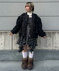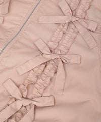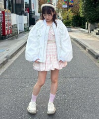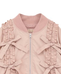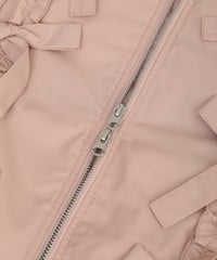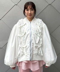 フロントにリボン・フリルをあしらいガーリーなデザインにアレンジしたMA-1。 ミディ丈・裾広がりのシルエットに仕上げておりスカートからパンツまで様々なボトムと相性◎ ギャザースリーブの上からチュールを重ねボリューミーなシルエットに仕上げました。 両開きファスナーを使用しており用途やシーンに合わせ調節が可能。 程よい厚みの中綿を入れることで保温性もプラス。 ロングシーズンでご着用いただけるガーリーな着こなしにぴったりなアイテムです。 ・ ・・・・・・・・・ ・・・・・・・・ ・透け感:なし ・伸縮性:なし ・生地の厚さ:普通 ・裏地:あり ・ ・・・・・・・・・ ・・・・・・・・