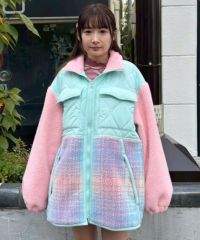 オニオンキルトと2種類のボアを組みわせた ストリートテイストなボアジャケット。 腰回りをカバーできる長めの着丈・ゆとりを持たせた オーバーシルエットに仕上げました。 両サイドにファスナーがついており、ファスナーを開けて シルエットにアクセントをプラスすることも可能です。 袖口はゴム仕様で安心のホールド感。 カラーごとに身頃のボアのカラーが異なる、 キャンディらしい遊び心たっぷりなアウターです。 ・ ・・・・・・・・・ ・・・・・・・・ ・透け感:なし ・伸縮性:なし ・生地の厚さ:(キルト部分)普通 / (ボア部分)普通 ・裏地:あり ・ ・・・・・・・・・ ・・・・・・・・