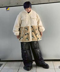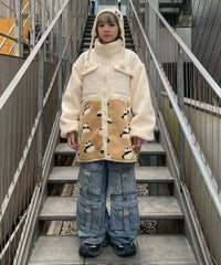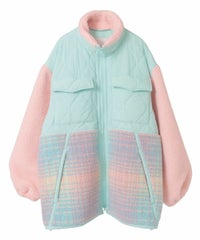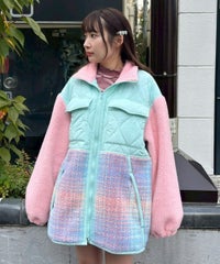 オニオンキルトと2種類のボアを組みわせた ストリートテイストなボアジャケット。 腰回りをカバーできる長めの着丈・ゆとりを持たせた オーバーシルエットに仕上げました。 両サイドにファスナーがついており、ファスナーを開けて シルエットにアクセントをプラスすることも可能です。 袖口はゴム仕様で安心のホールド感。 カラーごとに身頃のボアのカラーが異なる、 キャンディらしい遊び心たっぷりなアウターです。 ・ ・・・・・・・・・ ・・・・・・・・ ・透け感:なし ・伸縮性:なし ・生地の厚さ:(キルト部分)普通 / (ボア部分)普通 ・裏地:あり ・ ・・・・・・・・・ ・・・・・・・・