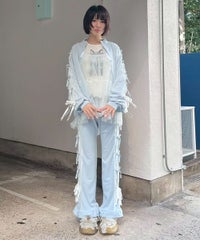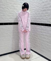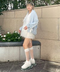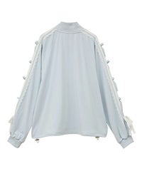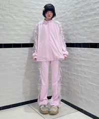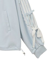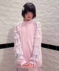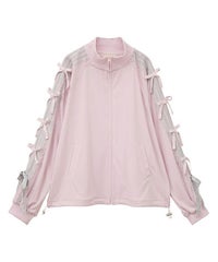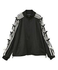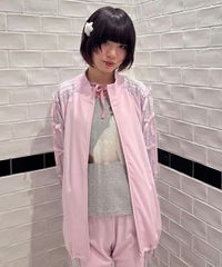 ご好評いただいたトラックジャケットが新色を追加して再登場! インナーを着込めるように身幅は程よくゆとりを持たせ ウエストや腰まわりをカバーできる着丈に仕上げており コーディネートのバランスを取りやすいサイジング。 裾はリブではなく、ドローコード仕様にすることで着こなしや気分によって シルエットや着丈を調節できる所もポイント。 サイドのラインにリボンを施しフェミニンさをプラス。 柔らかく滑らかな肌触りの生地感。 伸縮性があり、さらりとしたやや薄めのエステルポンチを使用。 トップスとしても羽織りとしても活躍するトラックジャケットです。 ・・・・・・・・・・・・・・・・・・・・・・ ・透け感: なし ・伸縮性: あり ・生地の厚さ: やや薄手 ・裏地:なし ・・・・・・・・・・・・・・・・・・・・・・