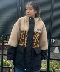 オニオンキルトとレオパード・無地のボアを組み合わせた ストリートテイストなボアジャケット。 柔らかな手触りのボアは保温性はもちろん、季節感をプラスしてくれます。 キルティングは光沢を抑えたシンプルかつ大人っぽい表情が魅力。 腰回りをカバーできるオーバーシルエットなサイジングで 厚手のインナーを着込んでも着膨れして見えず、すっきりと着こなしていただけます。 裾に配置された両サイドのドローコードでシルエットのアレンジも可能。 デイリーユースからレジャーシーンまで幅広い用途でお楽しみいただけます。 ・ ・・・・・・・・・ ・・・・・・・・ ・透け感:なし ・伸縮性:なし ・生地の厚さ:(キルト部分)普通 / (ボア部分)普通 ・裏地:あり ・ ・・・・・・・・・ ・・・・・・・・