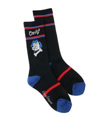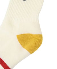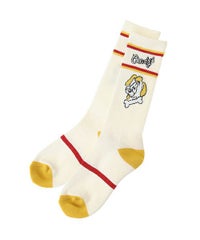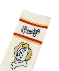 ファニーな犬モチーフを編み立てたライン入りリブソックス。 ストリート・カジュアルなコーディネートにおすすめ◎ 足裏部分はパイル仕様でクッション性も抜群。