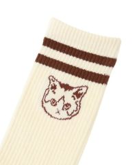 “LAZY CAT”を編み立てたライン入りリブソックス。 甲部分に大きく入ったロゴもポイント。 足裏部分はパイル仕様でクッション性も抜群。