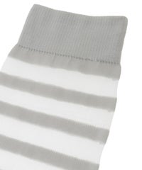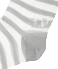 シアーな質感のボーダーのニーハイソックス。かかと部分には「CND」ロゴをジャガードで編み立てました。ショート丈のボトムとも相性◎ガーリーなスタイリングにはもちろん、ストリートな着こなしにもオススメ。・ ・・・・・・・・・ ・・・・・・・・・透け感::あり・伸縮性:あり・生地の厚さ:やや薄い・ ・・・・・・・・・ ・・・・・・・・