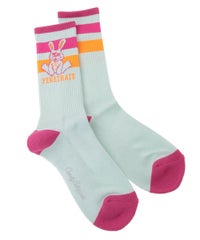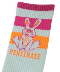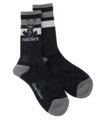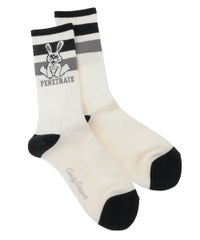 アメコミタッチにアレンジした3つ目のラビットモチーフをジャガードで編み立てたリブソックス。足裏はクッション性が高いパイル編みで柔らかな履き心地に仕上げました。メンズサイズでユニセックスでお楽しみいただけます。・ ・・・・・・・・・ ・・・・・・・・・透け感:なし・伸縮性:あり・生地の厚さ:普通・ ・・・・・・・・・ ・・・・・・・・