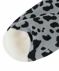 オリジナルのレオパードパターンをジャガードで表現したリブソックス。 配色で2本ラインを入れてアクセントをプラスしました。 足裏はクッション性が高いパイル編みで柔らかな履き心地に仕上げました。 同じパターンを使用したニットカーディガンを組み合わせた着こなしもオススメ。 ・ ・・・・・・・・・ ・・・・・・・・ ・透け感:あり ・伸縮性:あり ・生地の厚さ:普通 ・ ・・・・・・・・・ ・・・・・・・・