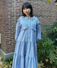 裾広がりのシルエットに仕上げたロング丈のワンピース。 程よくゆったりとしたサイジングにすることで、 身体のラインが出過ぎないリラクシーなシルエットに。 ビスチェ風の切り替えは位置をやや下めに設定しフリルをあしらうことで 胸元がスッキリと見えるようにデザインしています。 袖部分はゴム仕様にすることでパフスリーブのシルエットがキレイに見え機能性も◎ シワになりにくい程よい薄さのポリエステル素材使用しておりお手入れのしやすさはもちろん、 着心地も軽やかに仕上げています。 春らしい雰囲気のギンガムチェック2色とモード感のあるブラック(無地)の3色展開。 大人ガーリーなスタイルに最適な1着です。