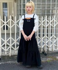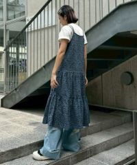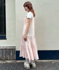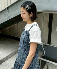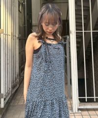 リボンディティールが目を引くキャミワンピース。 胸元には「Candy」ロゴの刺繍を入れてアクセントをプラス。 身幅に程よくゆとりを持たせ、裾部分はティアードデザインを取り入れることで 身体のラインが出過ぎず落ち感のあるシルエットに仕上げています。 1枚ではもちろん、シアー素材のタートルトップスやコンパクトサイズのトップスを 組み合わせたレイヤードスタイルもお楽しみいただけます。 色展開ごとに素材が異なり、花柄は針抜きテレコ、レオパードは天竺、 ブラックは伸縮性のあるフライスを使用しています。 リラクシーで小慣れ感のある雰囲気を演出できる1枚です。