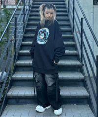 アメコミタッチのグラフィックがPOPなスウェットワンピース。 ゆったりとした身幅とアームホールで、体のラインを拾いにくく、お尻まですっぽり隠れる丈感もうれしい。 程よい肉感のある裏毛素材を使用。 型崩れしにくくロングシーズン着用できます。 トラックパンツやデニムパンツなどをレイヤードしても◎ 落ち感があり、ゆとりのあるシルエットでユニセックスでお楽しみいただける1枚です。