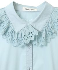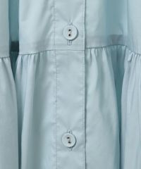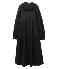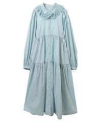 クラシカルなムードのワンピース。 衿部分にはコットンレースをあしらいアクセントをプラス。 裾にかけて広がるシルエットで女性らしい印象に仕上げています。 ポリエステル混のブロード素材を使用することで軽やかな着心地で、 シワになりにくく手入れのしやすさも◎ ワンピースとしてはもちろん、前を開けて軽いアウターとしてもご着用いただけます。