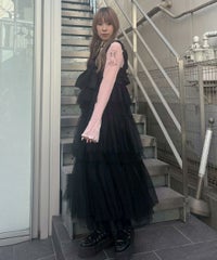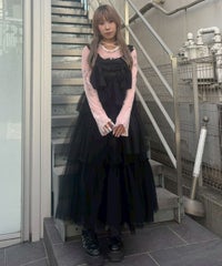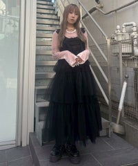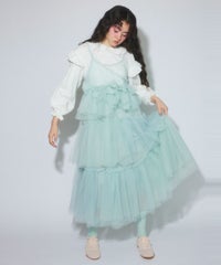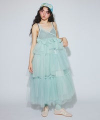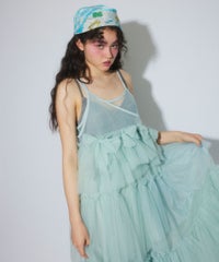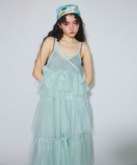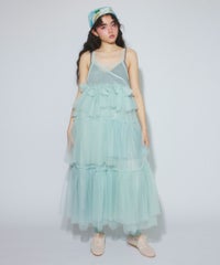 全体にチュール生地を使用した、繊細なキャミワンピースです。